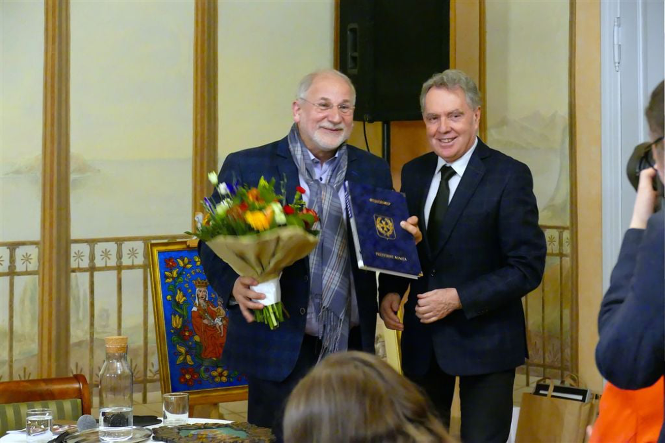 Główna częścią spotkania była rozmowa z Jubilatem poprowadzona przez prof. Józefa Borzyszkowskiego, w której artysta opowiedział o swojej twórczej działalności.