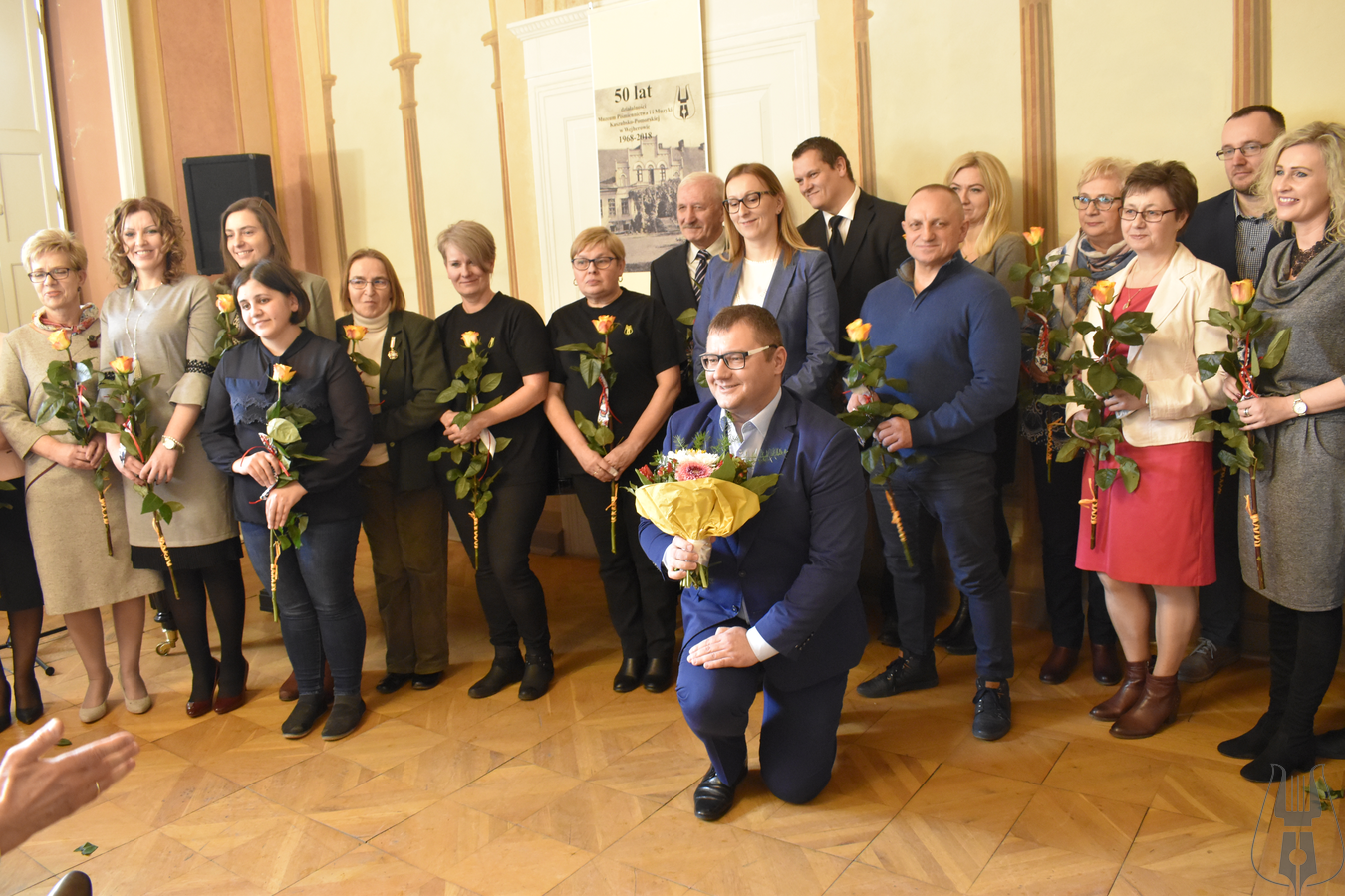 Na zakończenie pierwszej części uroczystości Dyrektor Muzeum Tomasz Fopke podziękował wszystkim obecnym pracownikom instytucji, wręczył kwiaty i zaprosił do wspólnego zdjęcia.