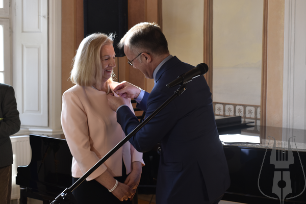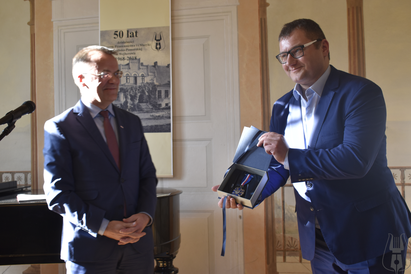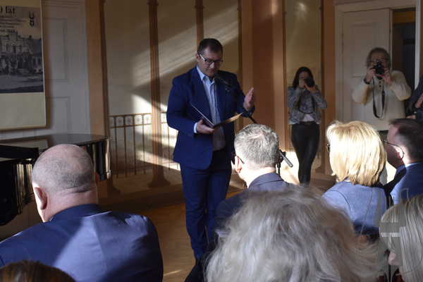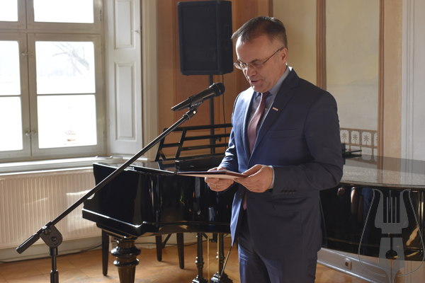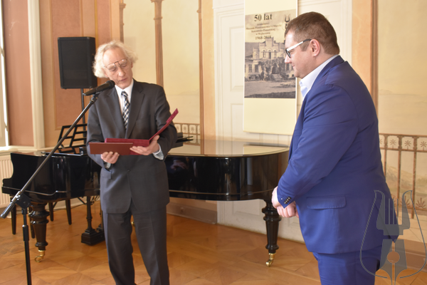 Po części artystycznej głos zabrał Jarosław Sellin, Sekretarz Stanu w Ministerstwie Kultury i Dziedzictwa Narodowego, który podkreślił niezwykle ważną rolę wejherowskiego Muzeum w krzewieniu kultury Kaszub. Szczególnym momentem wystąpienia było wręczenie odznaczeń nadawanych przez Ministra Kultury i Dziedzictwa Narodowego. Muzeum Piśmiennictwa i Muzyki Kaszubsko-Pomorskiej w Wejherowie otrzymało Srebrny Medal „Zasłużony Kulturze Gloria Artis”, przyznawany osobie lub instytucji wyróżniającej się w dziedzinie twórczości artystycznej, działalności kulturalnej lub ochronie kultury i dziedzictwa narodowego. Odznaczeniami „Zasłużony dla Kultury Polskiej” wyróżnione zostały wieloletnie pracownice Muzeum – Joanna Cichocka, Janina Kurowska oraz Grażyna Wirkus. Minister wręczył także odznaczenia ks. Dziekanowi Danielowi Nowakowi oraz Błażejowi Musiałczyk. Za przyznane wyróżnienia w imieniu wszystkich nagrodzonych podziękował ks. Dziekan Daniel Nowak.