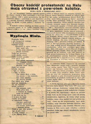 Ciekawostką jest kaszubski wiersz Franciszka Sędzickiego zatytułowany „Wypłinęła Wisła”.