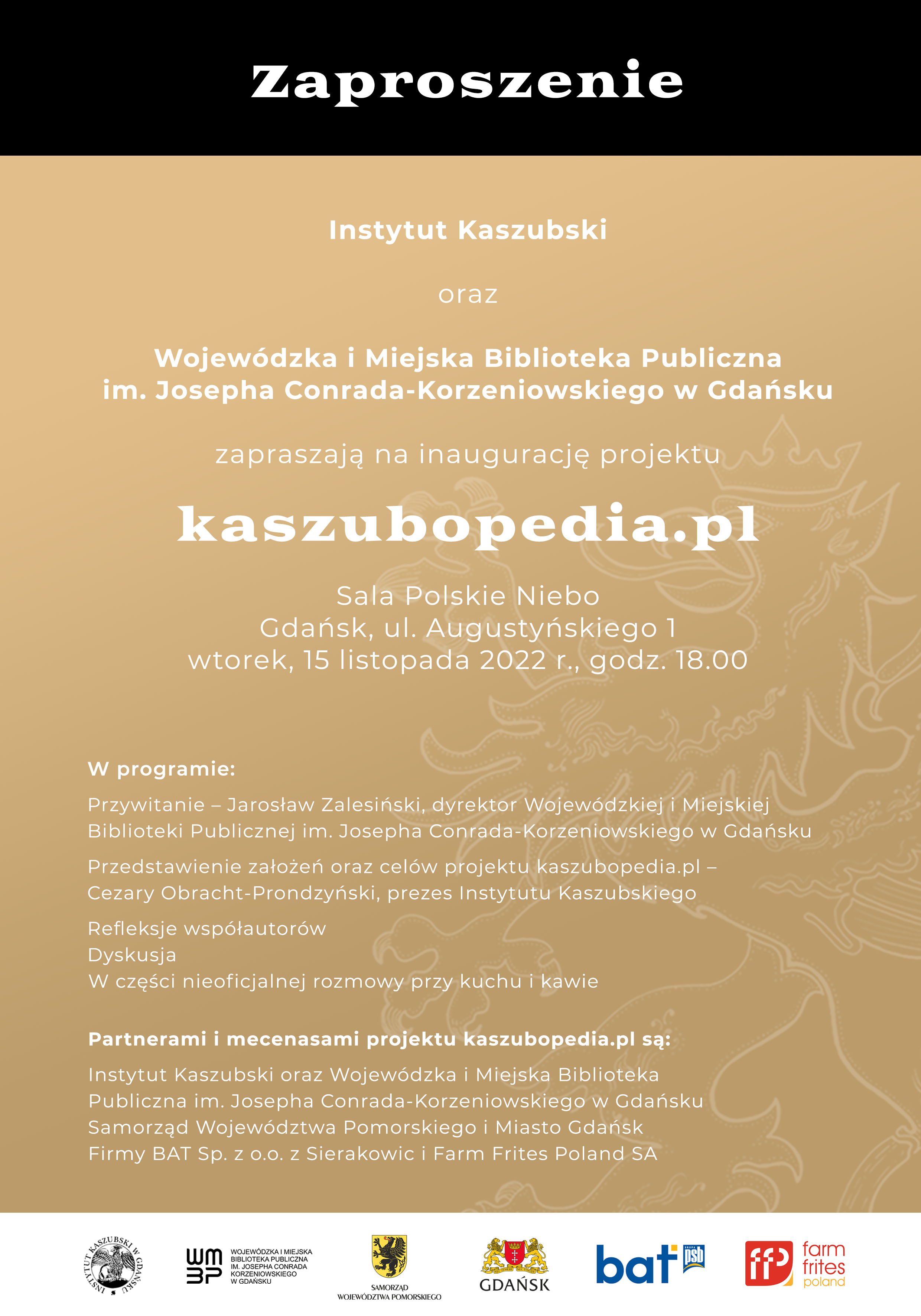 Instytut Kaszubski oraz Wojewódzka i Miejska Biblioteka Publiczna im. Josepha Conrada-Korzeniowskiego w Gdańsku zapraszają na inaugurację projektu kaszubopedia.pl