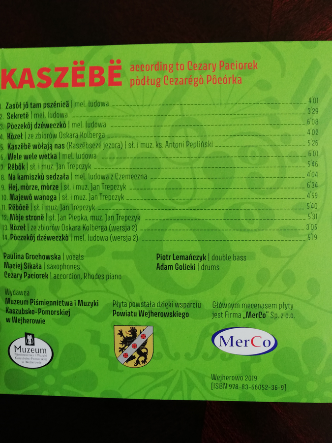 Nakładem Muzeum Piśmiennictwa i Muzyki Kaszubsko- Pomorskiej ukazała się płyta ,,Kaszëbë according to Cezary Paciorek’’. Cezary Paciorek jest kompozytorem, akordeonistą, oraz znanym aranżerem utworów. Cztery płyty z jego udziałem otrzymały nominację do Fryderyków. Koncertował m.in. na festiwalach w Rumunii, Niemczech, Szwecji. Płyta ,,Kaszëbë’’ zawiera 14 znanych utworów kaszubskich w nowym jazzowym brzmieniu. Występują: Paulina Grochowska – wokal, Maciej Sikała – saksofony, Cezary Paciorek – akordeon, Rhodes piano, Piotr Lemańczyk – double bass oraz Adam Golicki – perkusja. Płyta powstała dzięki wsparciu Firmy MerCo oraz Powiatu Wejherowskiego.