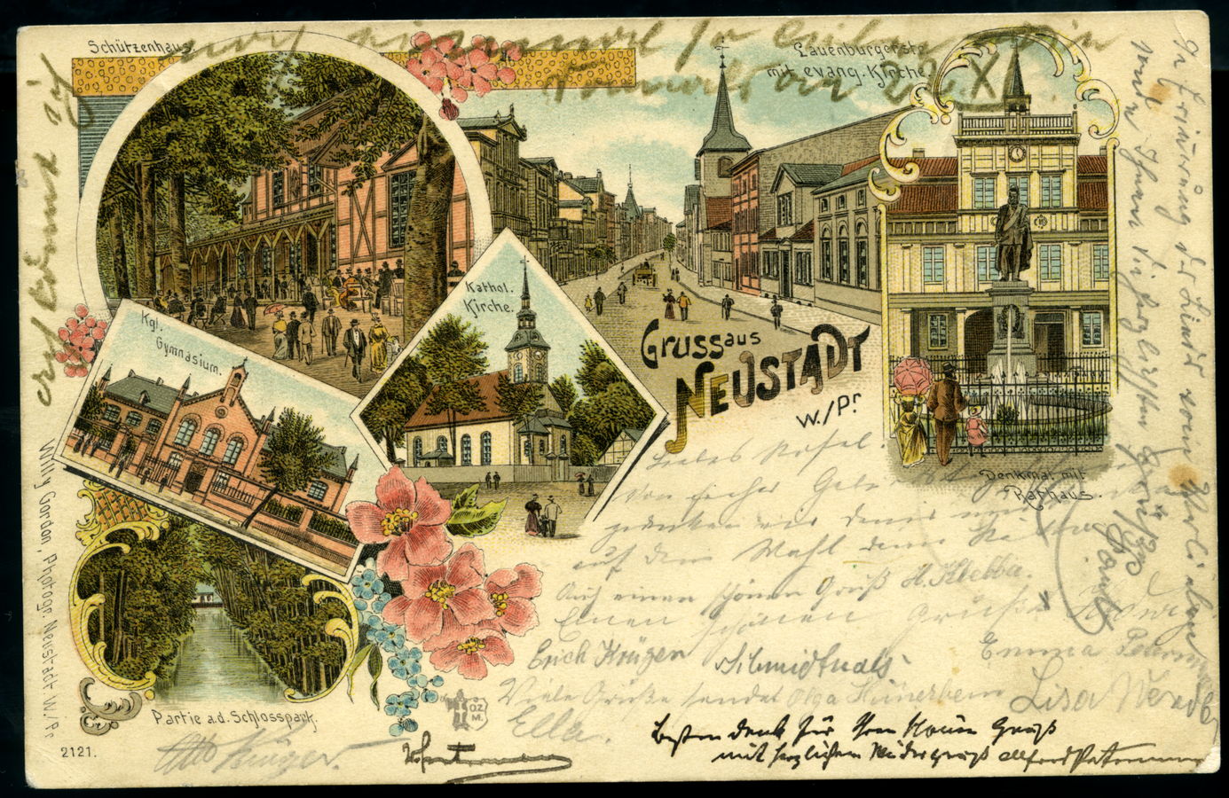 Ilustracja: karta pocztowa z Wejherowa, autor Willy Gordon, 1896-1902.