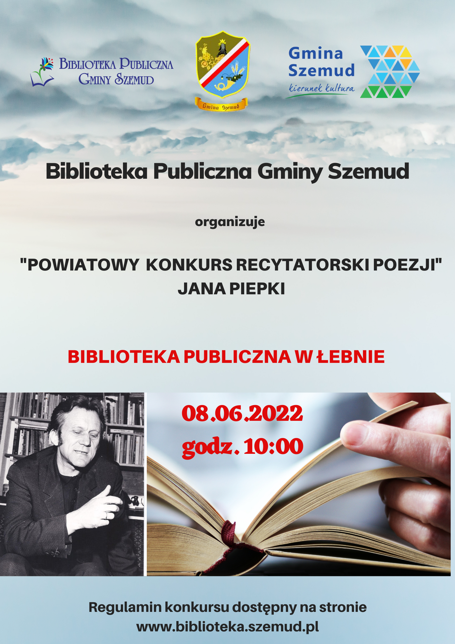 Muzeum Piśmiennictwa i Muzyki Kaszubsko-Pomorskiej w Wejherowie jako współorganizator zachęca do wzięcia udziału w Powiatowym Konkursie Recytatorskim Poezji Jana Piepki, który odbędzie się 8 czerwca br. w Bibliotece Publicznej Gminy Szemud - Filia w Łebnie.