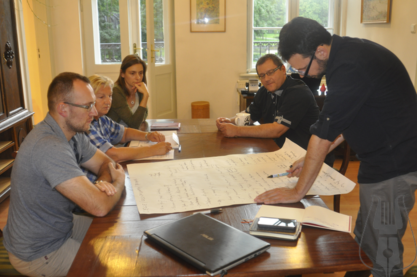 Jedno z roboczych spotkań dotyczące wystawy stałej w Książnicy. Od lewej: koordynator projektu wystawienniczego Andrzej Hoja, członkowie kuratorskiego zespołu muzealnego: Michał Hinc, Zuzanna Szwedek-Kwiecińska, Tomasz Fopke, Janina Kurowska.