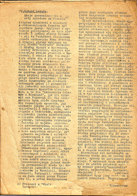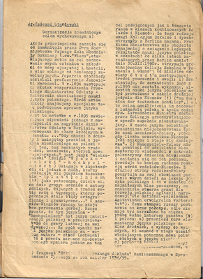 Fakt ów zdeterminował treść jednodniówki. Pierwszy z zamieszczonych w niej tekstów, autorstwa ostatniego przedwojennego dyrektora szkoły, Tadeusza Staniewskiego (który i po wojnie przez jakiś czas piastował to stanowisko), dotyczy germanizacji jako celu wychowawczego w polityce państwa prusko-niemieckiego.