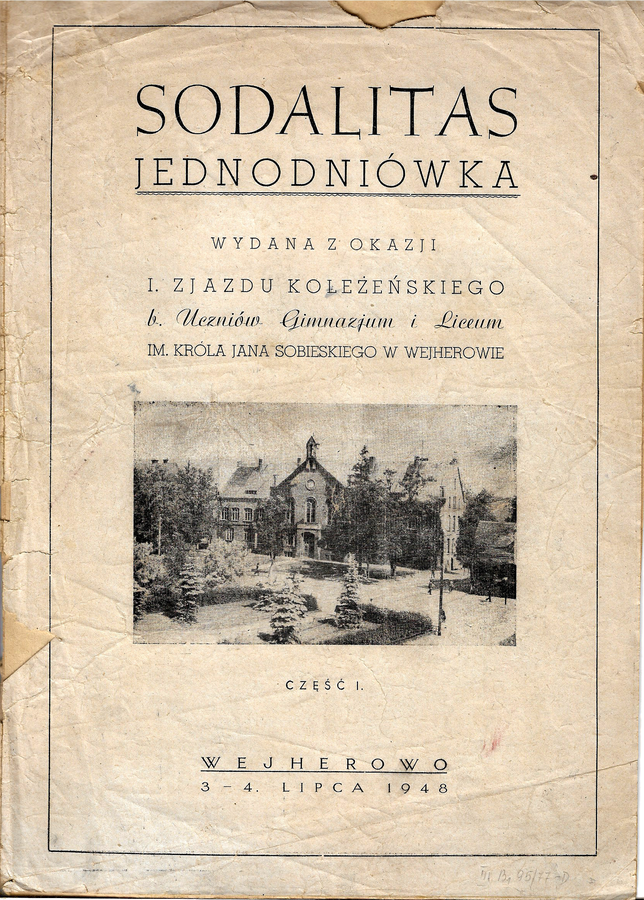 Takim właśnie drukiem jest „Sodalitas. Jednodniówka wydana z okazji I. zjazdu koleżeńskiego byłych Uczniów Gimnazjum i Liceum im. Króla Jana Sobieskiego w Wejherowie” z roku 1948.
