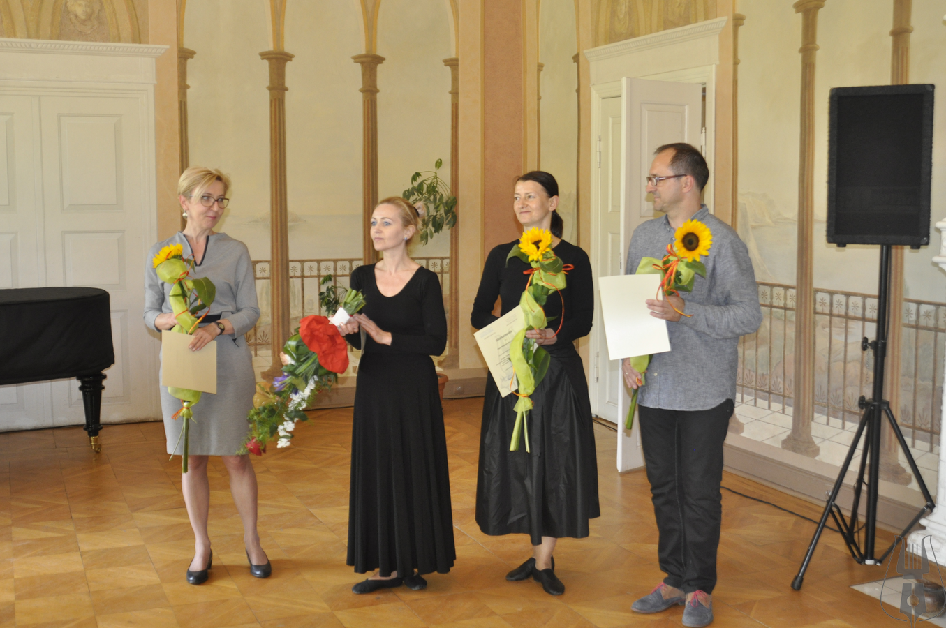 W ramach podsumowania rocznej nauki tańca kaszubskiego mogliśmy zobaczyć także prezentację w wykonaniu uczestników kursu. Po niej nastąpiło uroczyste odebranie certyfikatów, które wręczyli - prorektor ds. organizacyjnych i nauczania Akademii Muzycznej w Gdańsku prof. dr hab. Marek Rocławski oraz Dyrektor Muzeum Piśmiennictwa i Muzyki Kaszubsko-Pomorskiej w Wejherowie Tomasz Fopke.