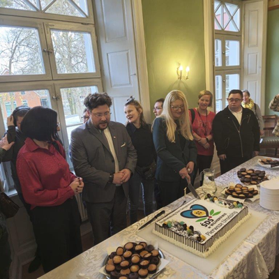 Po obejrzeniu wystawy na gości czekał słodki poczęstunek, w tym tort urodzinowy, który był symbolicznym akcentem podsumowującym pierwszą rocznicę działalności Środowiskowego Domu Samopomocy w Wejherowie.