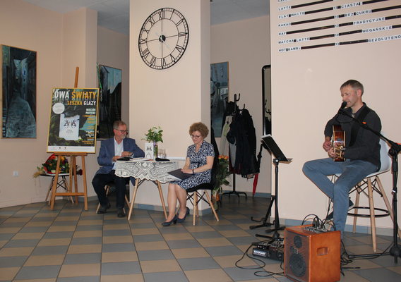 Poezje Leszka Glazy w wyjątkowy sposób zinterpretował wejherowski bard Andrzej Marczyński, a w rozważaniach nad wierszami z tomiku „DWA ŚWIATY” zagłębili się Autor i prowadząca spotkanie Małgorzata Wiszowata.