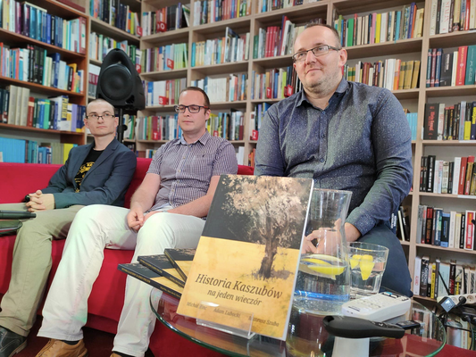 O tej książce się mówi! "Historia Kaszubów na jeden wieczór" w przejrzysty i bardzo przystępny sposób opowiada o historii Kaszubów od średniowiecza po współczesność, o dziejach samego narodu. Na wczorajszym spotkaniu autorzy publikacji dr Michał Hinc dyrektor Muzeum Piśmiennictwa i Muzyki Kaszubsko-Pomorskiej w Wejherowie , Adam Lubocki, Mateusz Szuba odpowiedzieli na nurtujące publiczność pytania. Dzięki wnikliwości prowadzącego Paweł Formela usłyszeliśmy, czy poprawnie mówi się "jestem Kaszubą" czy "jestem Kaszubem", a także, czy Kaszubi są potomkami starych Wikingów? Taka dawka historii przekazana w ciekawy sposób zaintrygowała wszystkich obecnych. Mamy nadzieję, że ta książka trafi do rąk wszystkich, a przede wszystkim turystów, napływowych mieszkańców, tak aby historia Kaszubów była powszechnie znana.