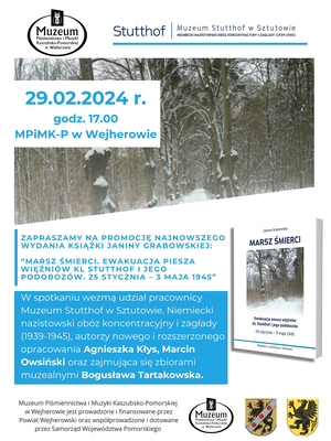 W spotkaniu wezmą udział pracownicy Muzeum Stutthof w Sztutowie. Niemiecki nazistowski obóz koncentracyjny i zagłady (1939-1945), autorzy nowego i rozszerzonego opracowania Agnieszka Kłys, Marcin Owsiński oraz zajmująca się zbiorami muzealnymi Bogusława Tartakowska.