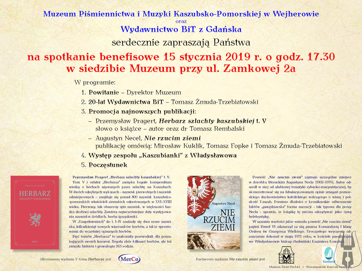 na spotkanie benefisowe 15 stycznia 2019 r. o godz. 17.30 w siedzibie Muzeum przy ul. Zamkowej 2 a
