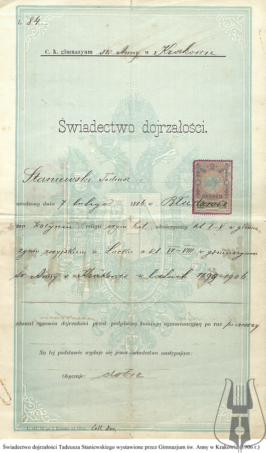 Nowym i niezwykle cennym nabytkiem Muzeum Piśmiennictwa i Muzyki Kaszubsko-Pomorskiej w Wejherowie są zbiory po Tadeuszu Staniewskim, dyrektorze wejherowskiego gimnazjum, przekazane w darze przez jego wnuczkę Alinę Iskierską-Bałkę.