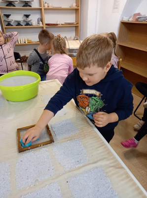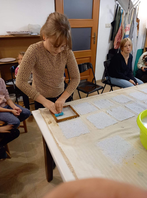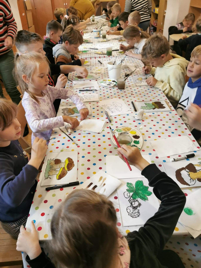 Dnia 17 października, Muzeum Piśmiennictwa i Muzyki Kaszubsko- Pomorskiej w Wejherowie odwiedziło 70 uczniów Szkoły Podstawowej w Grzybnie, wraz z opiekunami. Alicja Dampc poprowadziła zajęcia z malarstwa na szkle. Tematem przewodnim była jesień na Kaszubach. Iwona Stenka poprowadziła zajęcia z czerpania papieru oraz historii drukarstwa i papieru. Natomiast Małgorzata Wiszowata przedstawiła uczniom historię wejherowskiego Pałacu oraz omówiła bieżące wystawy,  jakie można zobaczyć w Muzeum. Okazało się, że mimo różnicy wieku, każdy uczestnik wyszedł z zajęć bardzo zadowolony. Wizyta w Muzeum, to świetny pomysł na jesienno- zimowy czas. Zapraszamy!