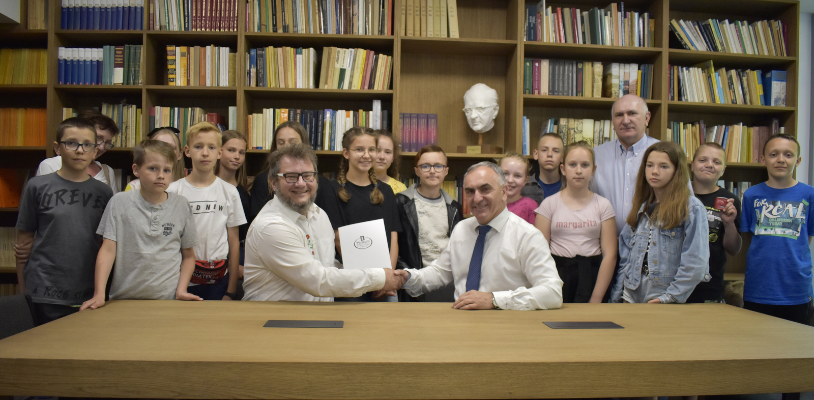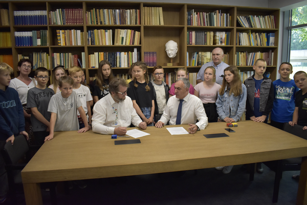 W dniu 16.06.2021 r. w muzealnej czytelni Książnicy im. prof. Gerarda Labudy, w otoczeniu uczniów i pedagogów Szkoły Podstawowej nr 2 im. prof. Gerarda Labudy w Luzinie, podpisane zostało porozumienie o współpracy na niwie edukacyjno-kulturalnej pomiędzy Szkołą, reprezentowaną przez Dyrektora Kazimierza Bistronia oraz Muzeum Piśmiennictwa i Muzyki Kaszubsko-Pomorskiej w Wejherowie, reprezentowanym przez Dyrektora Tomasza Fopke.