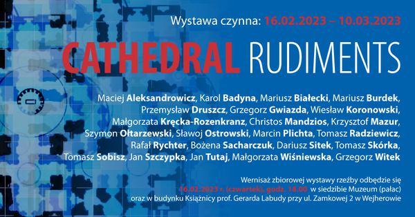 „CATHEDRAL RUDIMENTS” możemy rozumieć wielowarstwowo, również jako podwaliny, szczątki, relikty naszych katedr. To wystawa, rzeźbiarzy, dydaktyków, związanych z kilkoma katedrami, to prezentacja artystów wywodzących się z różnych Akademii Sztuk Pięknych w Polsce, których realizacje rzeźbiarskie można zobaczyć w wielu muzeach, galeriach i przestrzeniach publicznych w kraju i zagranicą.