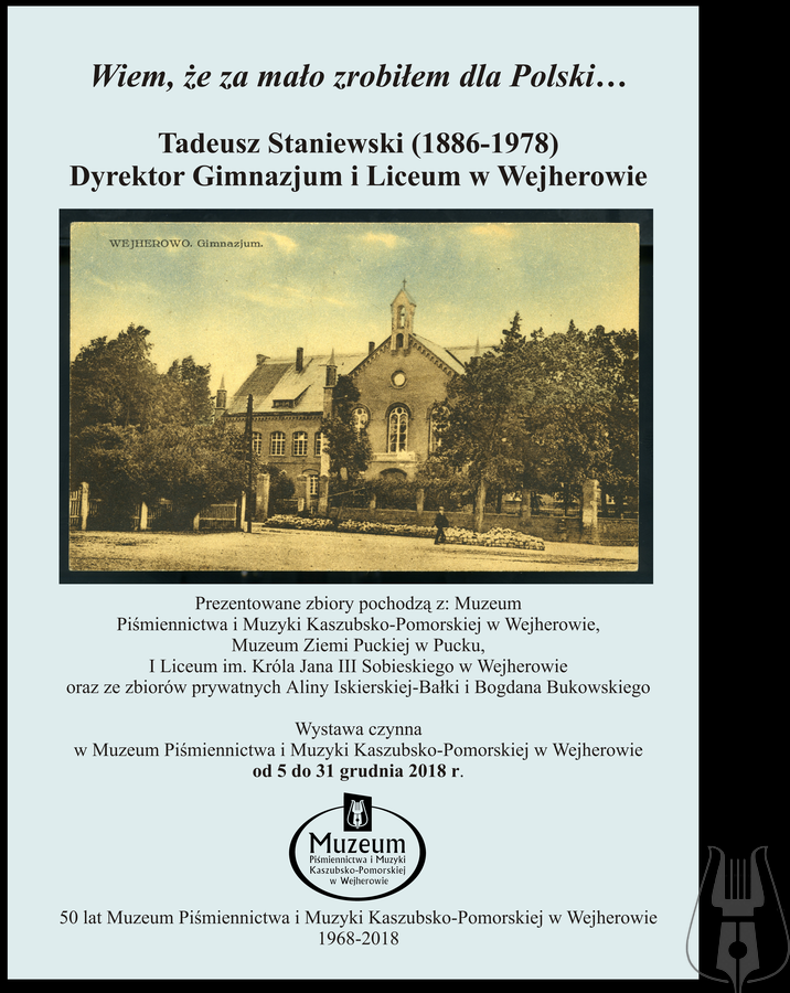 Tadeusz Staniewski (1886-1978). Dyrektor Gimnazjum i Liceum w Wejherowie. Wystawa i promocja książki