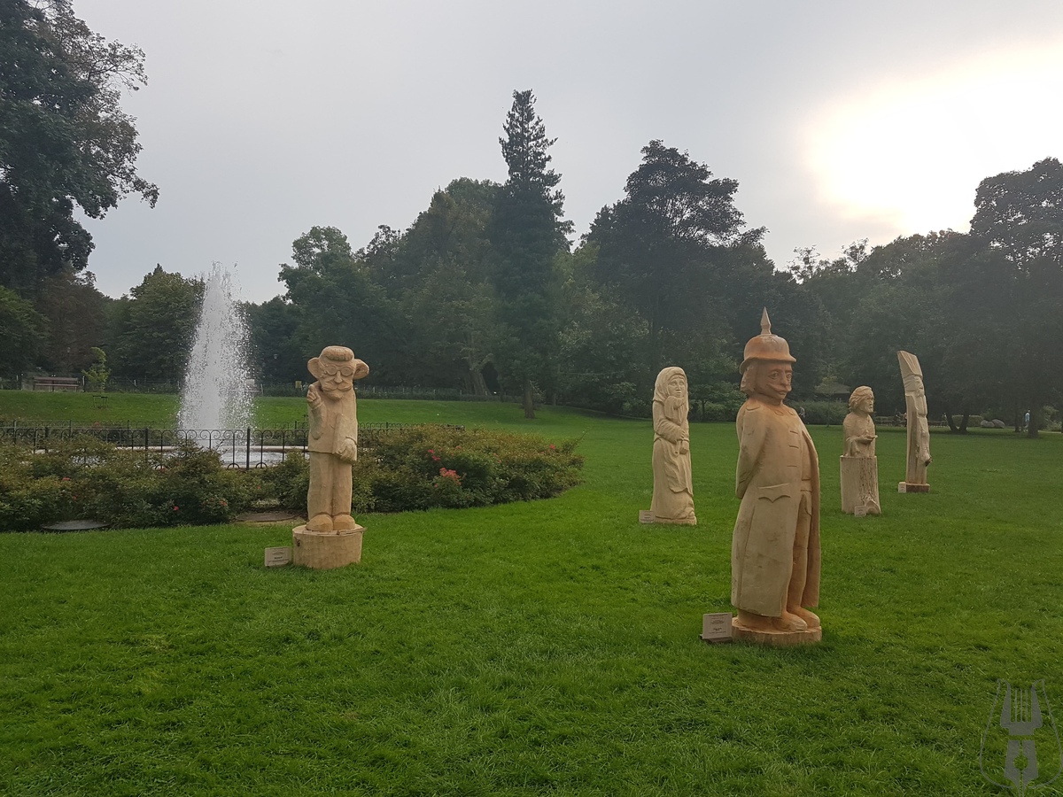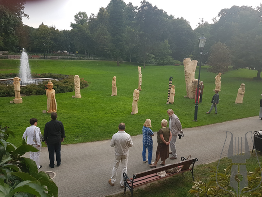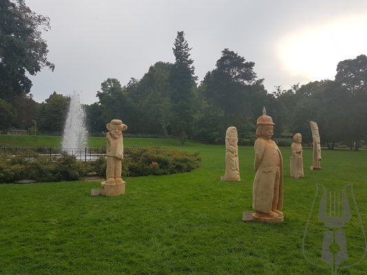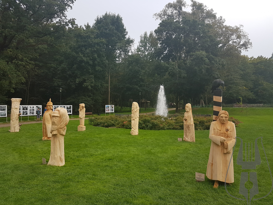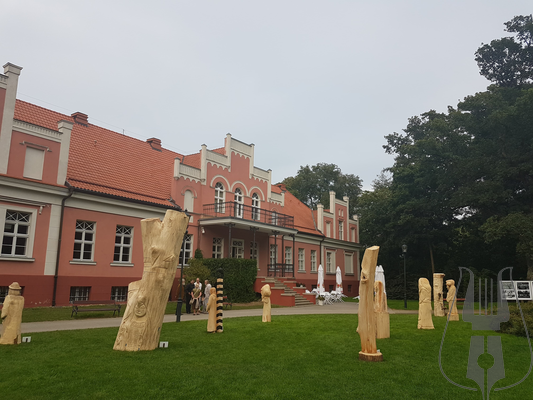 Przed Pałacem stanęło 12 pokaźnych rozmiarów rzeźb w drewnie, przedstawiających postaci z powieści Aleksandra Majkowskiego „Życie i przygody Remusa”. Autorami dzieł są artyści z powiatów: cieszyńskiego, bełchatowskiego, słupskiego a także z kilku regionów Niemiec w tym z Meklemburgii.