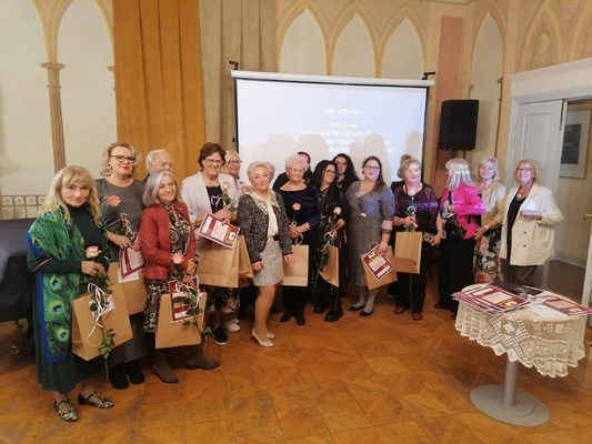 W imieniu Stowarzyszenia, życzenia i gratulacje przyjmowały Prezes Longina Wysocka oraz Wiceprezes Aleksandra Mazurkiewicz-Tiesler. Pani Aleksandra przedstawiła również działalność Stowarzyszenia z ostatnich pięciu lat, zwracając uwagę na liczne wystawy i projekty artystyczne, które umacniały pozycję SAP „Pasja” w regionie.