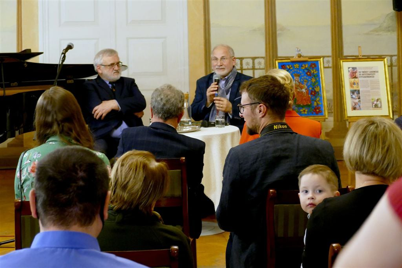 Główna częścią spotkania była rozmowa z Jubilatem poprowadzona przez prof. Józefa Borzyszkowskiego, w której artysta opowiedział o swojej twórczej działalności.