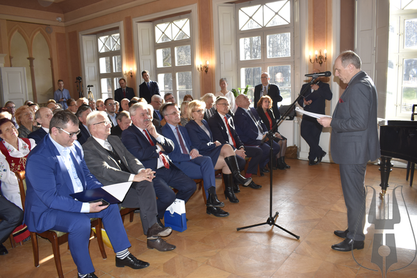 Po części artystycznej głos zabrał Jarosław Sellin, Sekretarz Stanu w Ministerstwie Kultury i Dziedzictwa Narodowego, który podkreślił niezwykle ważną rolę wejherowskiego Muzeum w krzewieniu kultury Kaszub. Szczególnym momentem wystąpienia było wręczenie odznaczeń nadawanych przez Ministra Kultury i Dziedzictwa Narodowego. Muzeum Piśmiennictwa i Muzyki Kaszubsko-Pomorskiej w Wejherowie otrzymało Srebrny Medal „Zasłużony Kulturze Gloria Artis”, przyznawany osobie lub instytucji wyróżniającej się w dziedzinie twórczości artystycznej, działalności kulturalnej lub ochronie kultury i dziedzictwa narodowego. Odznaczeniami „Zasłużony dla Kultury Polskiej” wyróżnione zostały wieloletnie pracownice Muzeum – Joanna Cichocka, Janina Kurowska oraz Grażyna Wirkus. Minister wręczył także odznaczenia ks. Dziekanowi Danielowi Nowakowi oraz Błażejowi Musiałczyk. Za przyznane wyróżnienia w imieniu wszystkich nagrodzonych podziękował ks. Dziekan Daniel Nowak.
