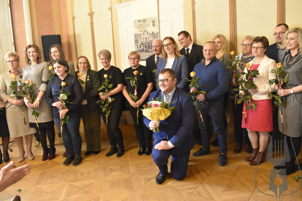 Na zakończenie pierwszej części uroczystości Dyrektor Muzeum Tomasz Fopke podziękował wszystkim obecnym pracownikom instytucji, wręczył kwiaty i zaprosił do wspólnego zdjęcia.