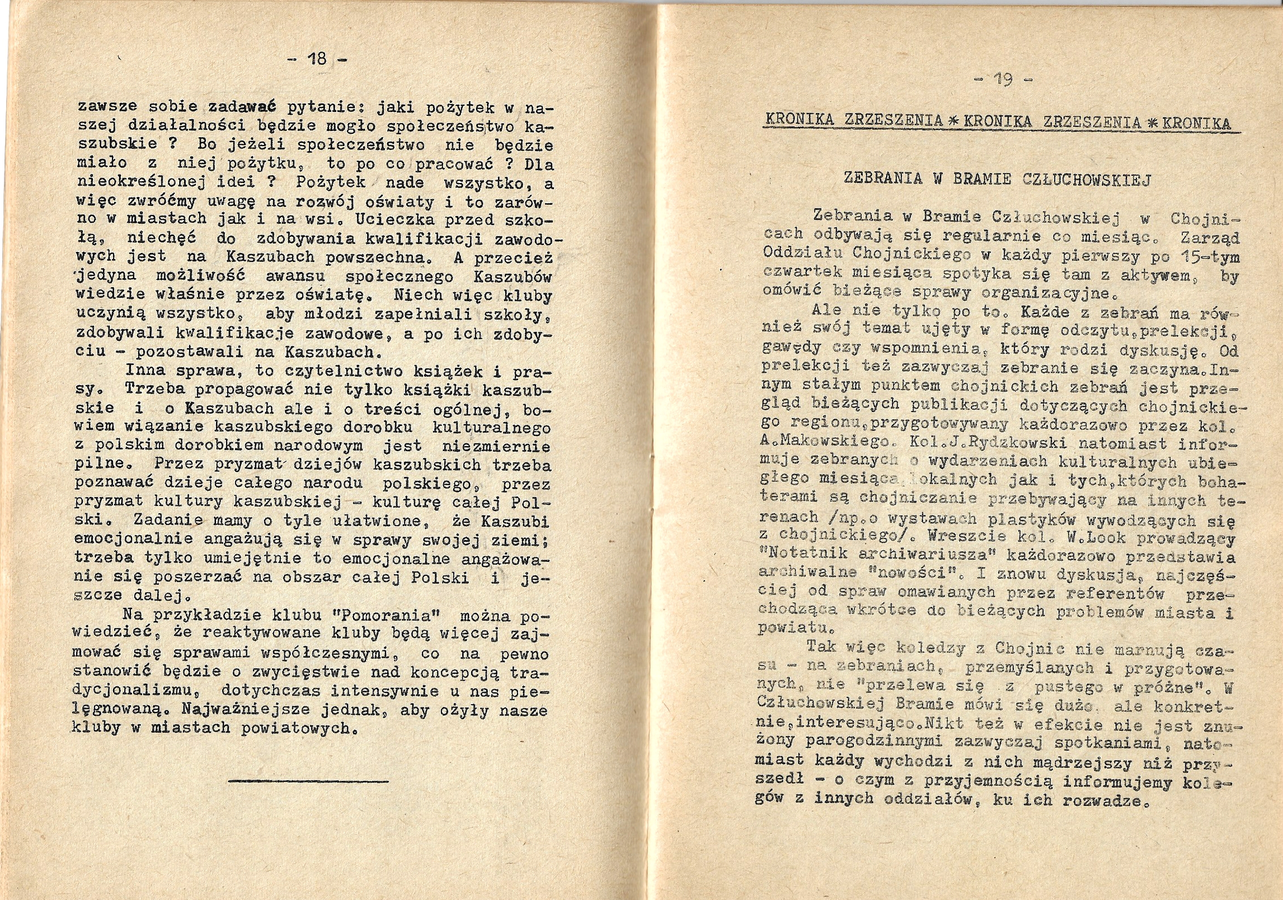 Redakcja szacownego miesięcznika „Pomerania”, czytelnicy, władze Zrzeszenia Kaszubsko-Pomorskiego, wszyscy oni mogli, jakże słusznie, świętować w styczniu bieżącego roku sześćdziesiątą rocznicę powstania pisma. Nazywało się ono z początku inaczej, było wydawane przez organizację o innej nazwie, ale przecież jest tak, że i noworodek wygląda zupełnie inaczej niż ten sam człowiek po sześćdziesięciu latach…