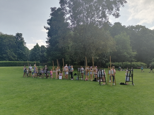 Warsztaty malarskie, które odbyły się na świeżym powietrzu, przyciągnęły liczne grono młodych artystów wraz z rodzicami. Uczestnicy mieli okazję wyrazić swoją kreatywność i pasję do sztuki, malując w inspirującej atmosferze otaczającej przyrody. Marta Papierowska, zarażając entuzjazmem i pozytywną energią, wspierała dzieci w tworzeniu ich unikalnych dzieł.