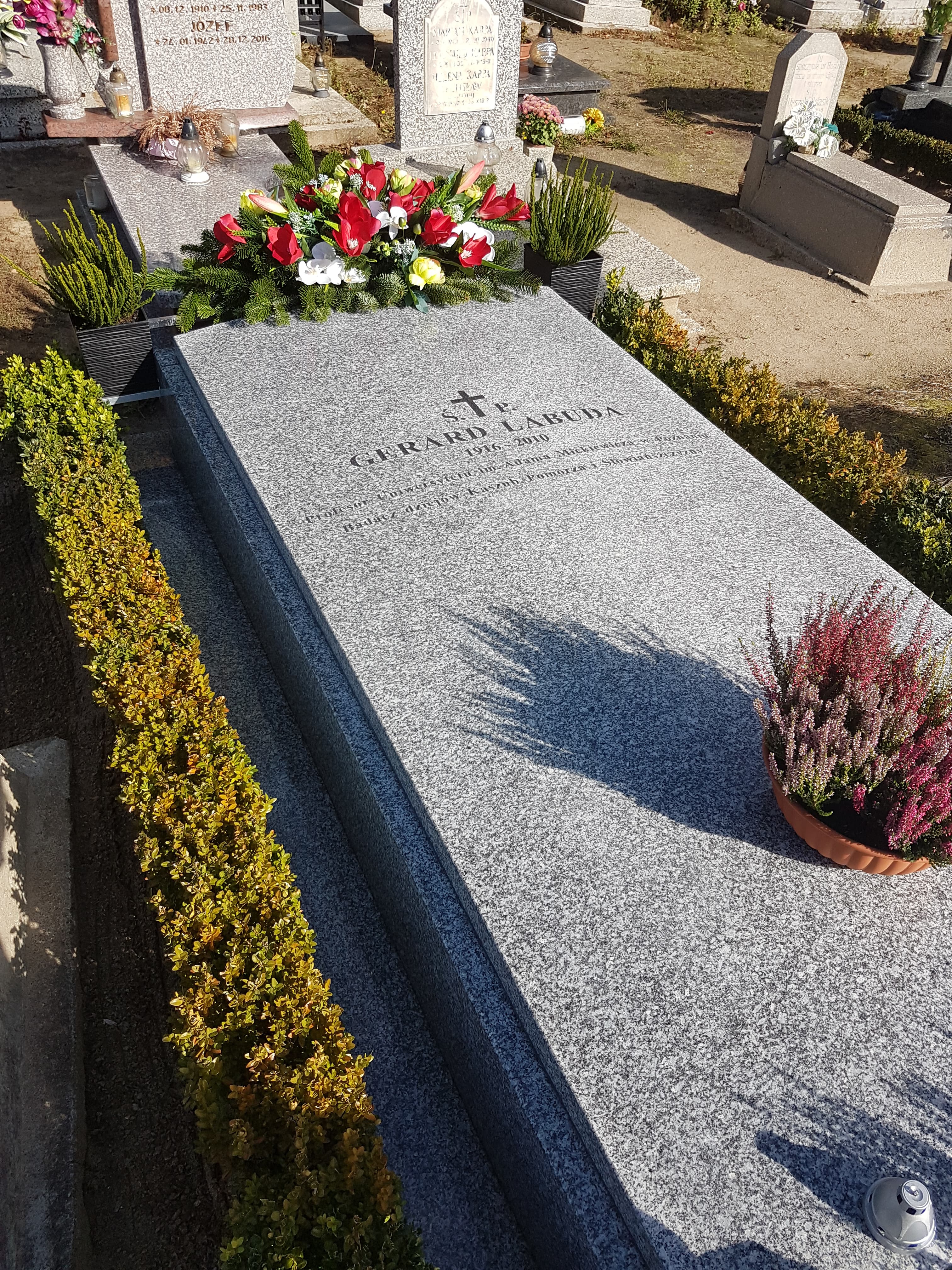 Jak co roku, 1 października, w rocznicę śmierci Wielkiego Kaszuby, wybitnego historyka Gerarda Labudy, pracownicy Muzeum Piśmiennictwa i Muzyki Kaszubsko-Pomorskiej w Wejherowie odwiedzili Jego grób na luzińskim cmentarzu. To w tej miejscowości Gerard Labuda zdobywał wiedzę w szkole powszechnej. Choć przez większość życia mieszkał i tworzył w Poznaniu - nie wyrzekł się swych korzeni. Jego ostatnią wolą był powrót na łono Małej Ojczyzny. Tak też się stało. Luzino, Kaszuby są i pozostaną miejscem wiecznego spoczynku Pana Profesora.