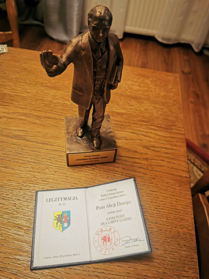 Pracownicy MPiMK-P w Wejherowie pragną serdecznie pogratulować swojej Koleżance Alicji Dampc za wyróżnienie Jej nagrodą Zasłużony dla Gminy Luzino, które otrzymała wspólnie z chórem Lutnia z Luzina za całokształt działalności.