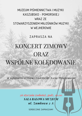 Stowarzyszenie Miłośników Muzyki wraz z Muzeum Piśmiennictwa i Muzyki Kaszubsko-Pomorskiej w Wejherowie serdecznie Państwa zapraszają na koncert kolęd!