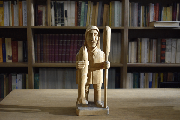 i wdzięczności. Tak właśnie było z Izajaszem Rzepą, mistrzem dłuta. Często ofiarowywał on swoje dzieła przyjaciołom. Rzeźbiarz z Redy jest znany zwłaszcza ze swoich kolorowych ptaszków, które są dzisiaj prawdziwą gratką dla kolekcjonerów. Prócz oddawania piękna fauny i flory, Izajasz Rzepa starał się chronić w rzeźbie obrazy ginących zajęć i zawodów. Jedną z tego typu rzeźb, w dowód uznania i twórczej przyjaźni, otrzymał Gerard Labuda. Jest to silny kaszubski rybak z wiosłem wykonany w 1975 roku.