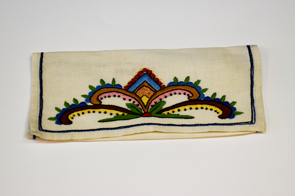 Dawniej damy nie wycierały nosków czy łzów wzruszenia papierowymi chusteczkami, tylko jak należy używały do tego batystowych. Komplet, gładko wyprasowanych, chusteczek chowano w specjalnej płóciennej saszetce. I właśnie ta saszetka jest tu najważniejsza – została ozdobiona przez Teodorę Gulgowską (1860–1951), którą bez kozery możemy nazwać matką współczesnego haftu kaszubskiego.