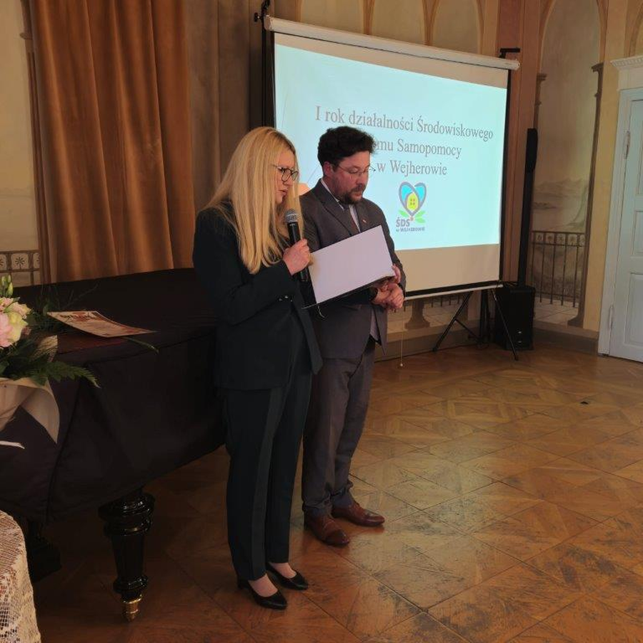 Prezentacja przygotowana przez zespół ŚDS, zaprezentowana przez Aldonę Czerwińską, przybliżyła zebranym działalność placówki, ukazując jej rozwój i osiągnięcia na przestrzeni roku.