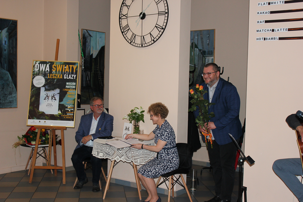 W dniu 24 maja 2022 r., w kawiarni Caffeelife, mieszczącej się w Wejherowie, przy ul. Wałowej 10, odbył się wieczór poetycki i promocja tomiku poezji Leszka Glazy pt. „DWA ŚWIATY”. Wydarzenie zgromadziło przedstawicieli władz samorządowych, m.in. dr Gabrielę Lisius – Starostę Wejherowskiego, Arkadiusza Kraszkiewicza – zastępcę Prezydenta Miasta Wejherowa i Leszka Szczypiora – wiceprzewodniczącego Rady Miasta Wejherowa. Obecni byli również dyrektorzy placówek kulturalnych i oświatowych m.in. dr Tomasz Fopke – Dyrektor Muzeum Piśmiennictwa i Muzyki Kaszubsko-Pomorskiej w Wejherowie, Jolanta Rożyńska – Dyrektor Wejherowskiego Centrum Kultury – Filharmonii Kaszubskiej w Wejherowie i Małgorzata Kolendowska – Dyrektor Biblioteki Publicznej im. Zaślubin Polski z Morzem w Pucku. Wśród przybyłych gości nie zabrakło rodziny, przyjaciół Autora i miłośników poezji, z którymi dane mu było i jest przemierzać codzienne ścieżki życia.