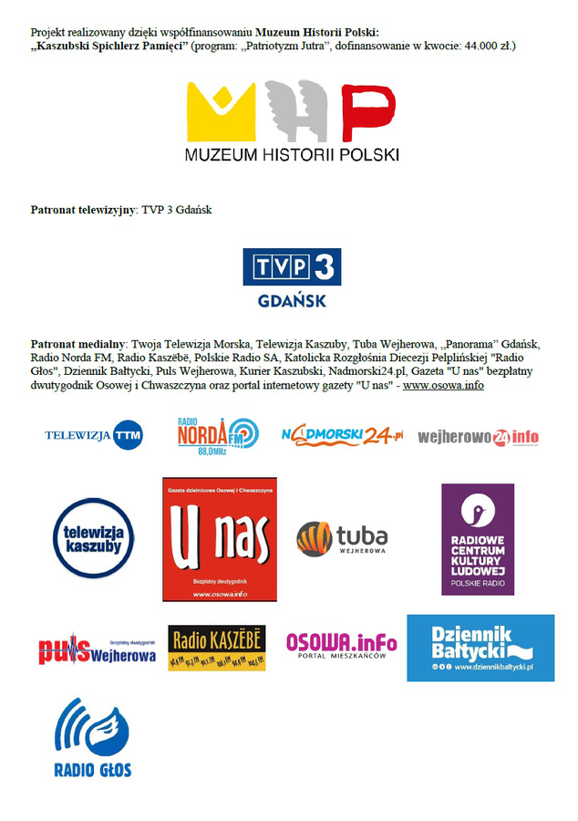„Kaszubski Spichlerz Pamięci” (program: „Patriotyzm Jutra”, dofinansowanie w kwocie: 44.000 zł.)