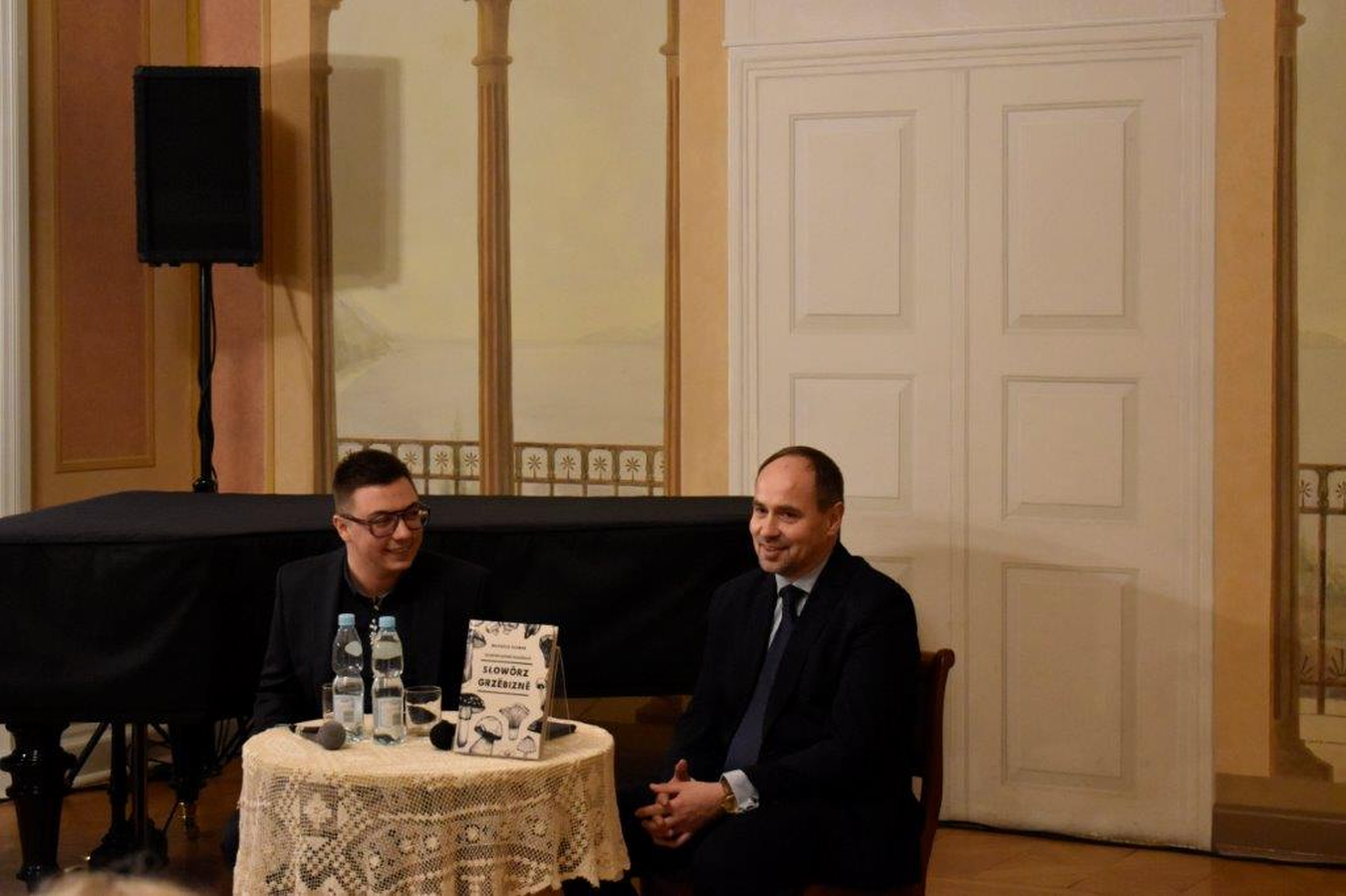 Wydarzenie rozpoczęło się od rozmowy autora z Dariuszem Majkowskim, który pytał o pracę nad słownikiem, o spotkania z informatorami pamiętającymi dawne kaszubskie nazwy grzybów, a przede wszystkim o rolę grzybów w życiu i kulturze Kaszubów. Mateusz Klebba opowiadał również o swoich pierwszych inspiracjach do napisania słownika, czyli wspólnych grzybobraniach z dziadkiem. Przypomniał także osoby, które przyczyniły się do powstania promowanej publikacji, m.in. Romana Drzeżdżona, Bożenę Ugowską i Danutę Stanulewicz.