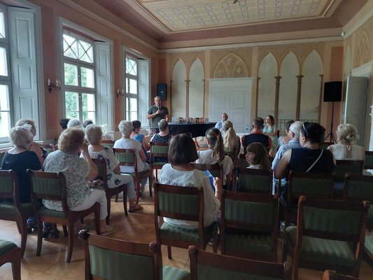 Gościem kolejnego spotkania literackiego w Letniej Bibliotece przy Pałacu była Daria Kaszubowska - Kaszubka z krwi i kości, dziennikarka z powołania, a z zamiłowania pisarka. Przyczynkiem do zorganizowania spotkania autorskiego była siedmiotomowa „Saga Kaszubska” i - napisana w duecie z Sylwią Kubik - powieść „Kaszubska ziemia, żuławski wiatr”.