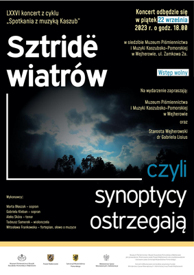 Na program wrześniowego koncertu złożą się utwory inspirowane różnymi zjawiskami pogodowymi występującymi na Kaszubach. Ich opis zawarty został w słowach pieśni ludowych oraz regionalnych autorstwa R. Gleinert, W. Frankowskiej, M. Kilarskiego, M. Selina, J. Stachurskiego, J. Trepczyka. Pieśni te powstały do słów J. Piepki, J. Rompskiego, T. Fopkego, M. Serkowskiego.