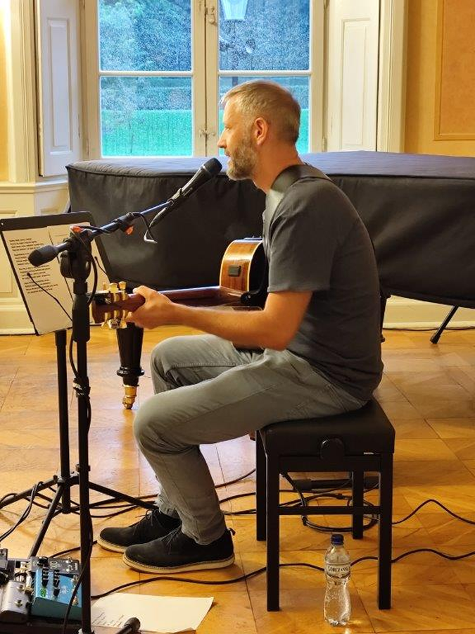 O oprawę muzyczną zadbał wejherowski bard – Andrzej Marczyński. Wysłuchaliśmy kilku utworów poetyckich, delektując się nie tylko pięknem brzmienia gitary, lecz i niepowtarzalnym głosem artysty, który z właściwą sobie skromnością wprowadzał gości w klimat wykonywanych utworów.