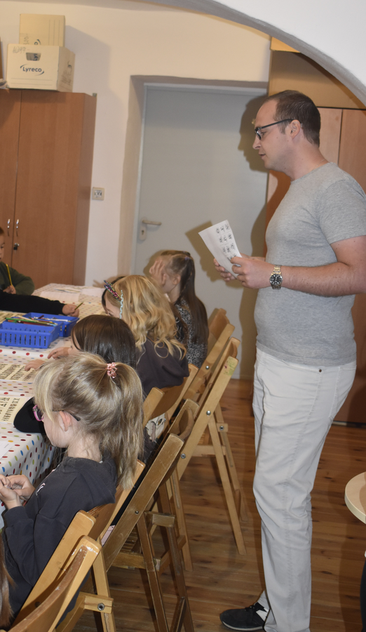 W ramach „Wakacji w muzeum”, organizowanych przez Muzeum Piśmiennictwa i Muzyki Kaszubsko-Pomorskiej w Wejherowie, odbyły się m. in. warsztaty z średniowiecznej kaligrafii, które poprowadził pan Adam Lubocki. Młodzi słuchacze, po zwiedzeniu Pałacu Przebendowskich-Keyserlingków, mogli poczuć się skrybami z dawnych wieków. Dowiedzieli się m. in., jakich liter nie znano w średniowieczu i jak długo powstawała ówczesna książka. Mogli także spróbować własnych sił w trudnej sztuce kaligrafii. W zajęciach wzięli udział uczniowie klas 0-III.