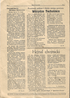 Na ostatniej stronie pozwolono sobie na niewielkie odstępstwo od ideologicznego charakteru publikacji. Pod hasłem „Poznawaj piękno i dzieje swego powiatu” zamieszczony został artykulik poświęcony Wdzydzom Tucholskim. Bardzo interesująca jest notka poświęcona hejnałowi chojnickiemu, obecnemu w miejskiej przestrzeni już w dawnych wiekach.