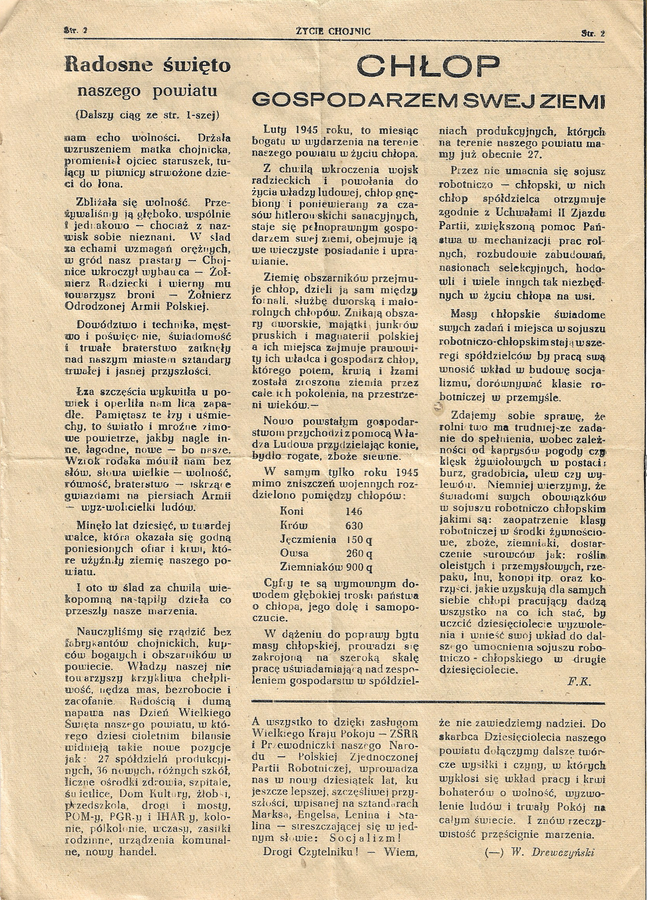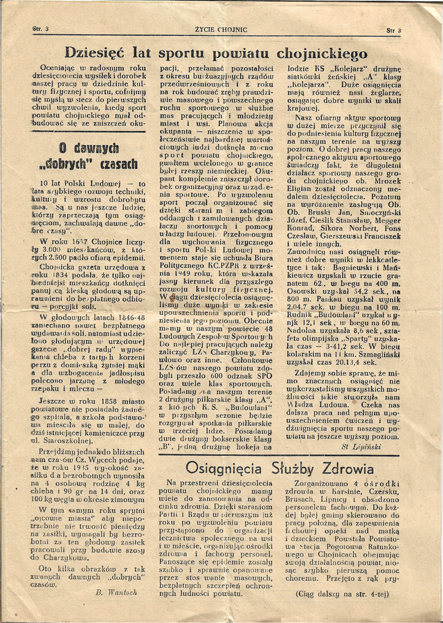 „ŻYCIE CHOJNIC” Z 1955 ROKU
