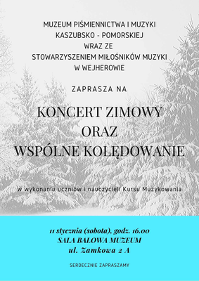 Zapraszamy na wyjątkowy koncert kolęd przygotowany przez adeptów i nauczycieli Kursu Muzykowania, prowadzonego w budynku Muzeum przez Stowarzyszenie Miłośników Muzyki w Wejherowie.