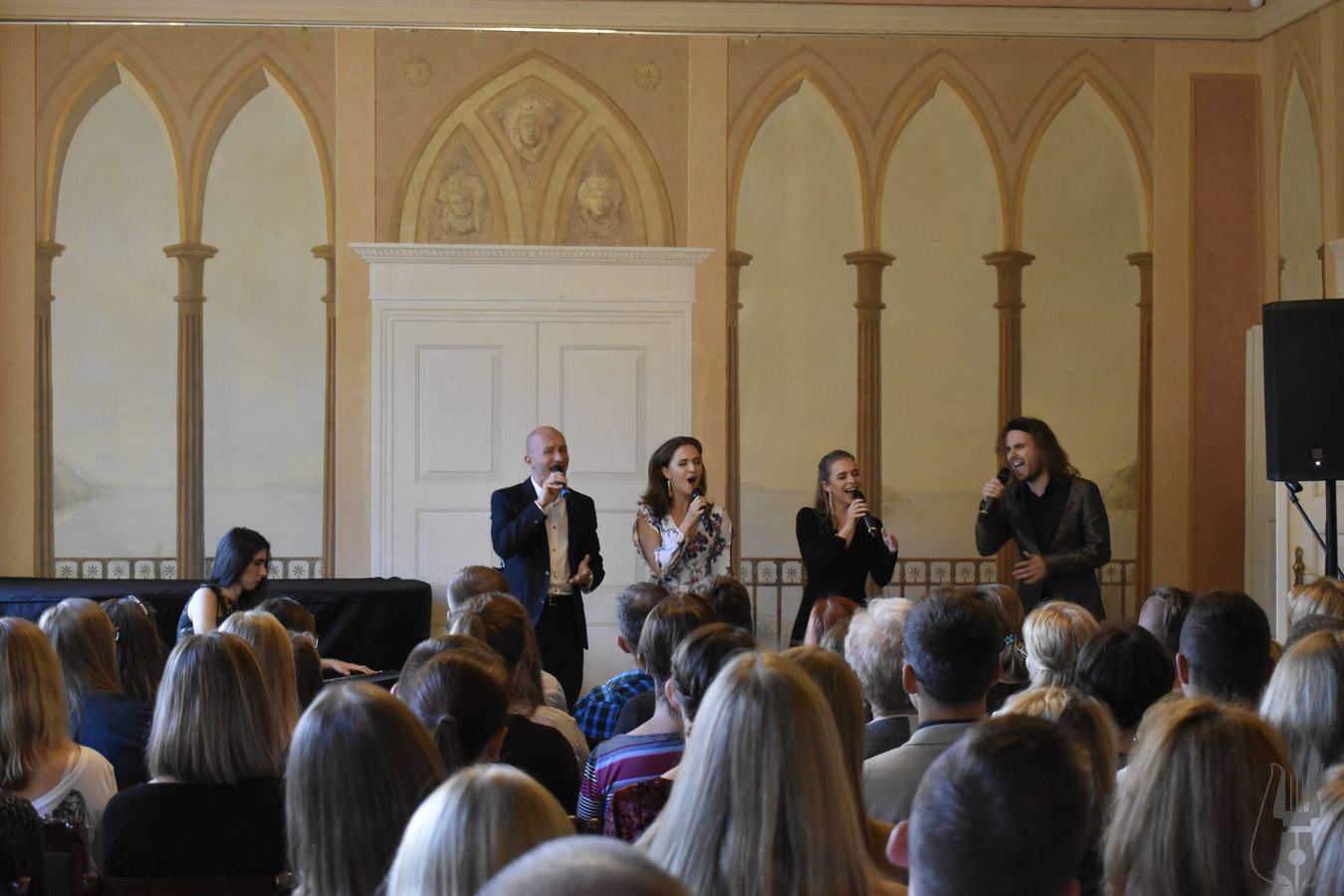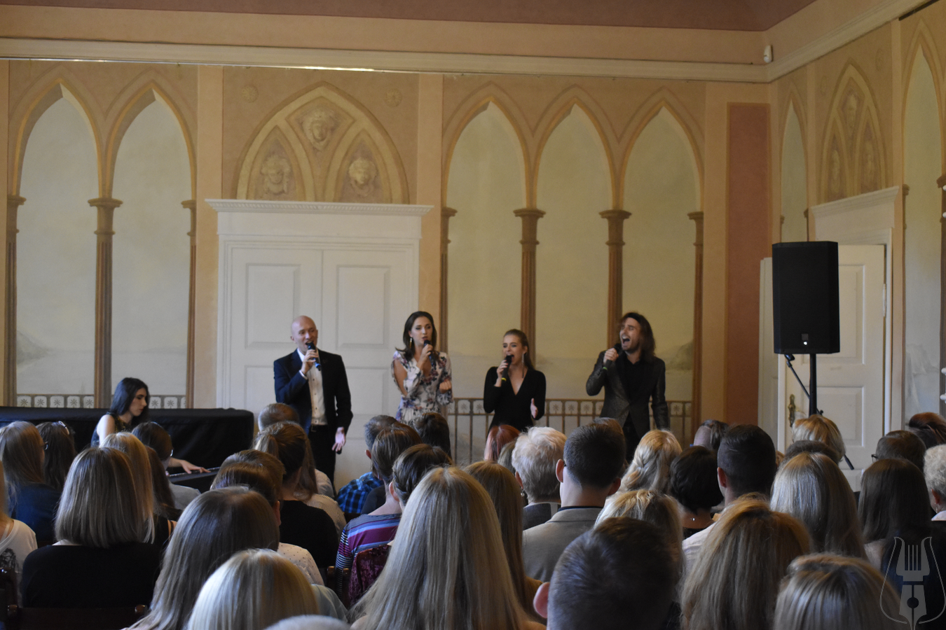 W niedzielę, 16 września br. w Muzeum Piśmiennictwa i Muzyki Kaszubsko-Pomorskiej w Wejherowie miał miejsce wyjątkowy koncert! W wypełnionej po brzegi sali balowej wejherowskiego Muzeum wystąpili wokaliści Studia Accantus – Sylwia Banasik, Paweł Izdebski, Małgosia Kozłowska, Adrian Wiśniewski. Na pianinie akompaniowała Kasia Mazurkiewicz. Artyści zaprezentowali największe przeboje musicali oraz muzyki filmowej śpiewając wyłącznie po polsku, do tekstów Doroty Kozielskiej. Nie zabrakło również polskich wersji piosenek z filmów animowanych, na które czekali najmłodsi słuchacze koncertu. Kameralny charakter koncertu umożliwił artystom bliski kontakt z publicznością, co nadało wydarzeniu unikatowy charakter. Utalentowani artyści zachwycili wejherowską publiczność, która nagrodziła wykonawców owacjami na stojąco i prośbą o bis. Po koncercie był czas na zdjęcia z artystami oraz autografy.