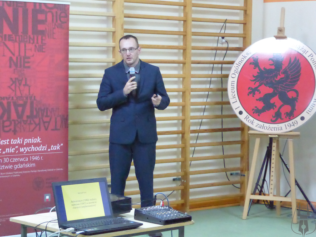 28 września w Liceum Ogólnokształcącym im. Książąt Pomorskich w Rumi odbyła się konferencja popularnonaukowa pt. „Sfałszowane zwycięstwo. Referendum (1946) i wybory parlamentarne (1947) na Kaszubach”. Była to pierwsze tego typu wydarzenie w ramach projektu edukacyjnego „Bliskie spotkania z historią najnowszą Kaszub” realizowanego przez Muzeum Piśmiennictwa i Muzyki Kaszubsko-Pomorskiej w Wejherowie. Twórcą i koordynatorem tego nowego przedsięwzięcia jest pracownik naszego muzeum dr Michał Hinc, który był również jednym z prelegentów konferencji. Do współpracy zaproszono specjalistów w zakresie historii najnowszej Pomorza Gdańskiego, Krzysztofa Drażbę i dra Daniela Czerwińskiego z gdańskiego oddziału Instytutu Pamięci Narodowej oraz Marcina Kłodzińskiego, doktoranta Instytutu Historii Uniwersytetu Gdańskiego. Prelegenci wyjaśnili młodzieży w jaki sposób władze komunistyczne doprowadziły do sfałszowania referendum i wyborów parlamentarnych i jakie było ich znaczenie w powojennej historii Kaszub. Konferencji towarzyszyła wystawa IPN autorstwa Krzysztofa Drażby pt. „Urna to jest taki pniak. Wrzucisz nie, wychodzi tak. Referendum 30 czerwca 1946 r. w województwie gdańskim”.
