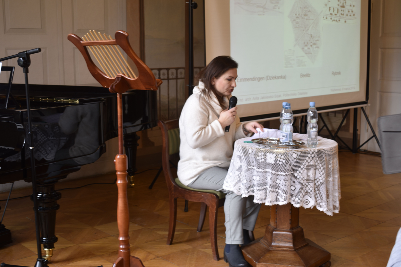 Na wstępie goście wysłuchali koncertu Weroniki Korthals-Tartas. W części wykładowej swoje referaty zaprezentowały cztery prelegentki. Dr Gabriela Lisius, Starosta Wejherowski, opowiedziała o sytuacji kobiet sprawujących funkcję samorządowe na przestrzeni 100 ostatnich lat. Barbara Borzyszkowska z Muzeum Zachodniokaszubskiego w Bytowie zabrała nas w świat gospodyń z Płotowa. Kolejno Bogumiła Cirocka, dziennikarka współpracująca z wieloma pomorskimi wydawnictwami, przedstawiła słuchaczom swoje rozważania odnośnie roli i wartości kobiety w stosunku do panujących stereotypów. Na koniec części wykładowej dr inż. arch. Anita Jaśkiewicz-Sojak, Miejski Konserwator Zabytków w Wejherowie, przybliżyła gościom tematykę domów i osiedli mieszkaniowych w zabytkowych XIX-wiecznych założeniach szpitalnych.