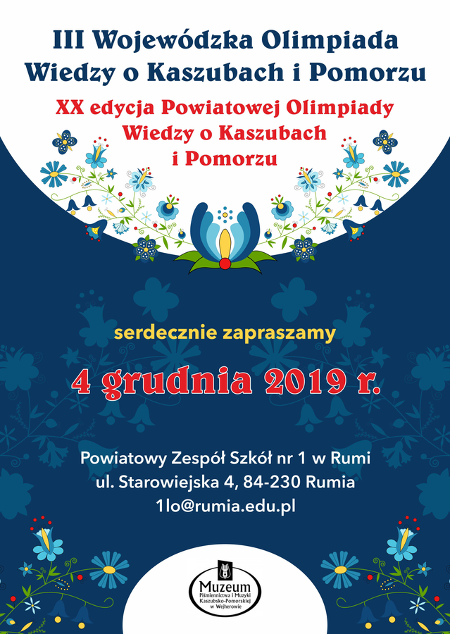 Muzeum Piśmiennictwa i Muzyki Kaszubsko-Pomorskiej w Wejherowie serdecznie zaprasza do wzięcia udziału w Olimpiadzie!