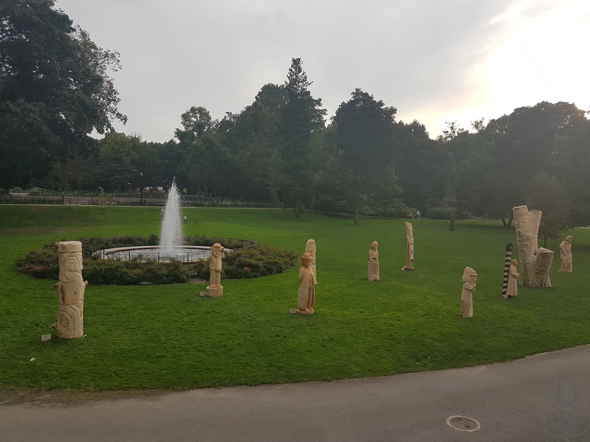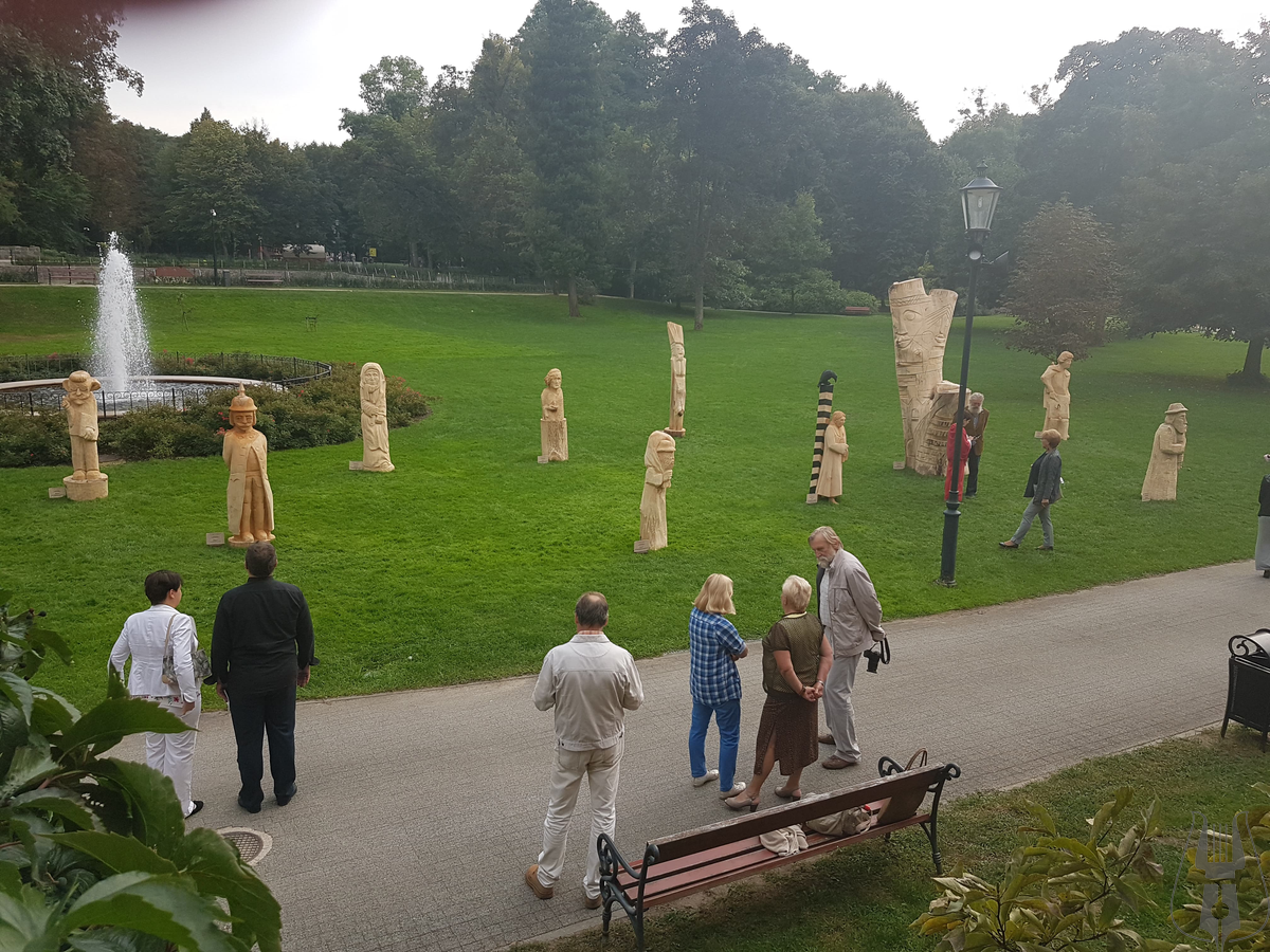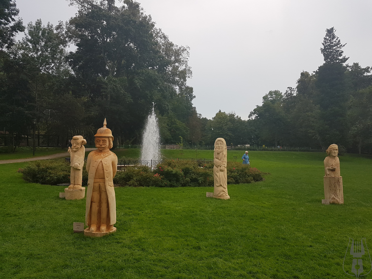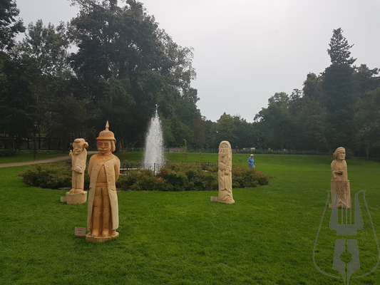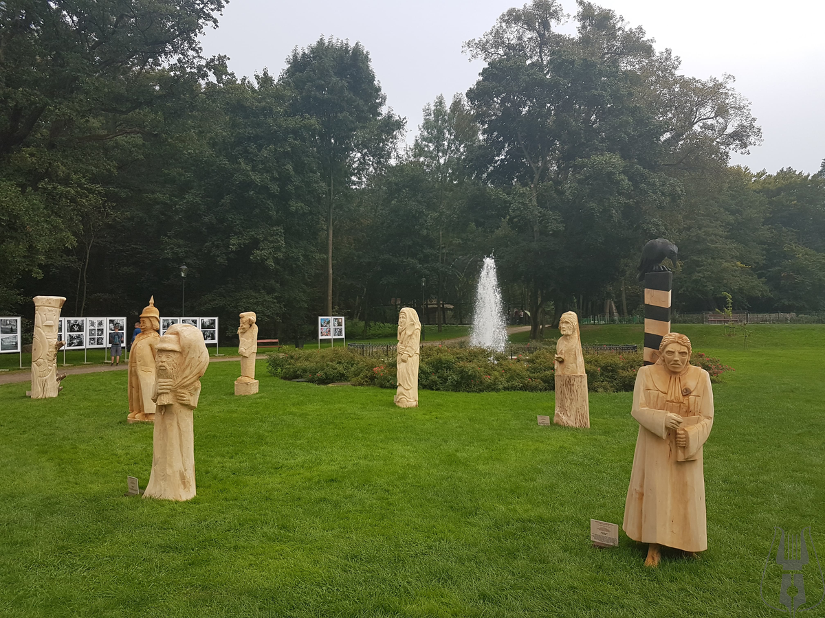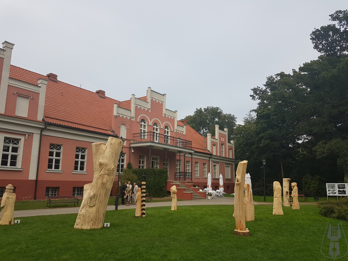 Przed Pałacem stanęło 12 pokaźnych rozmiarów rzeźb w drewnie, przedstawiających postaci z powieści Aleksandra Majkowskiego „Życie i przygody Remusa”. Autorami dzieł są artyści z powiatów: cieszyńskiego, bełchatowskiego, słupskiego a także z kilku regionów Niemiec w tym z Meklemburgii.